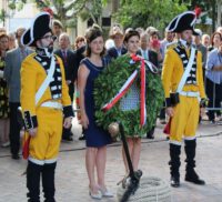 A los pies del monumento a los héroes se depositaron cuatro coronas de laurel, representando a Polonia, Francia, Zaragoza, y España. La corona de Polonia fue entregada por la Consejera del Departamento Político-Económico de la embajada de Polonia en España, y por una representante de la Asociación NASZ DOM, de polacos en Aragón.