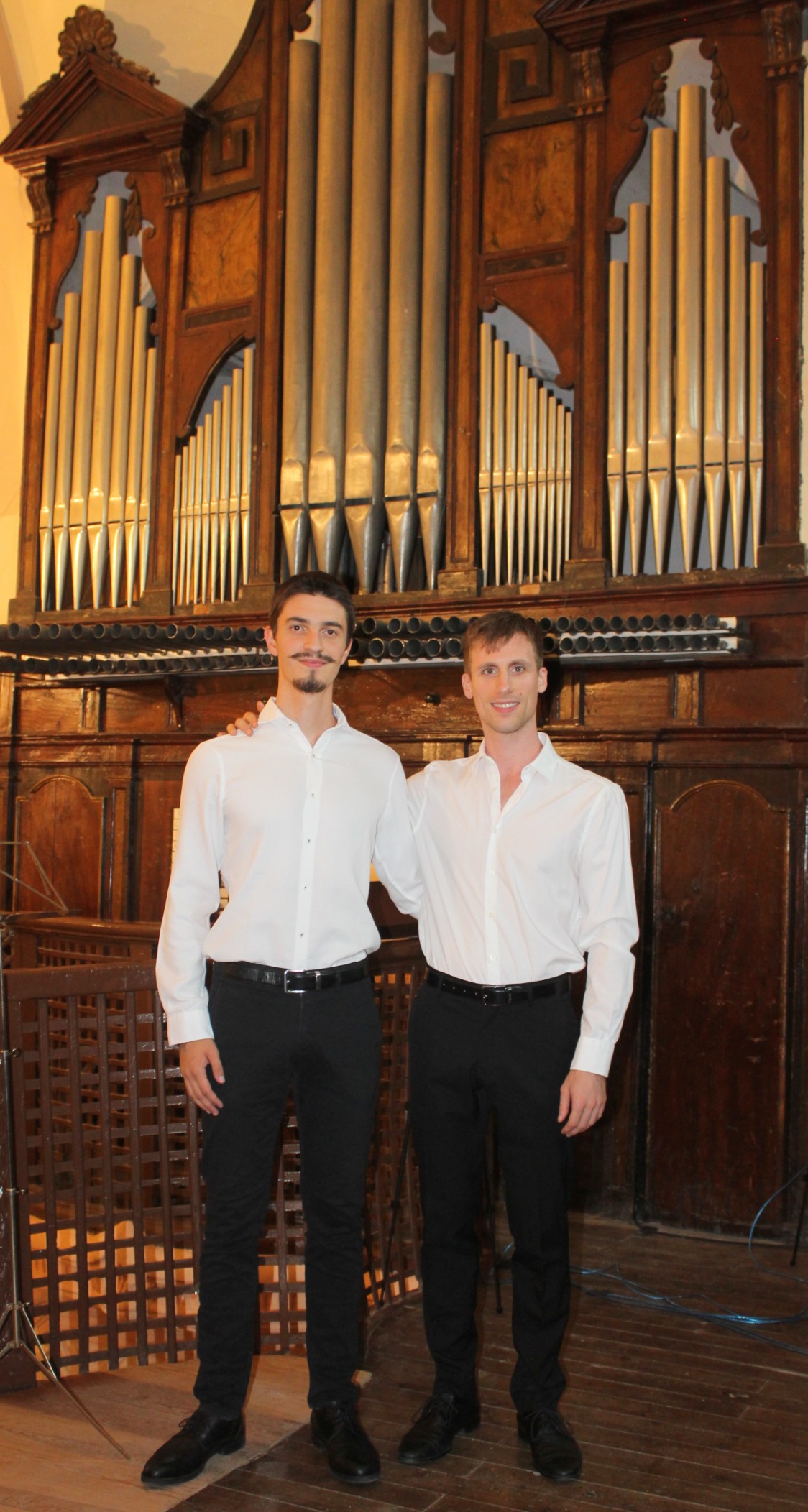 Nosotros somos alumnos del Conservatorio Superior de Música de Navarra. Nos conocimos en una asignatura, que es música de cámara. Hicimos esa asignatura a dúo y de ahí salió la idea de hacer conciertos en conjunto. Estamos muy agradecidos de estar hoy aquí en Ainzón pudiendo disfrutar tanto de la localidad y de la iglesia, como del instrumento y de lo bien que lo cuidan. Este órgano está datado en 1802 y está construido por Miguel Usamede. Es una saga de organeros que, aunque reside en Zaragoza, tiene sus raíces en Navarra.