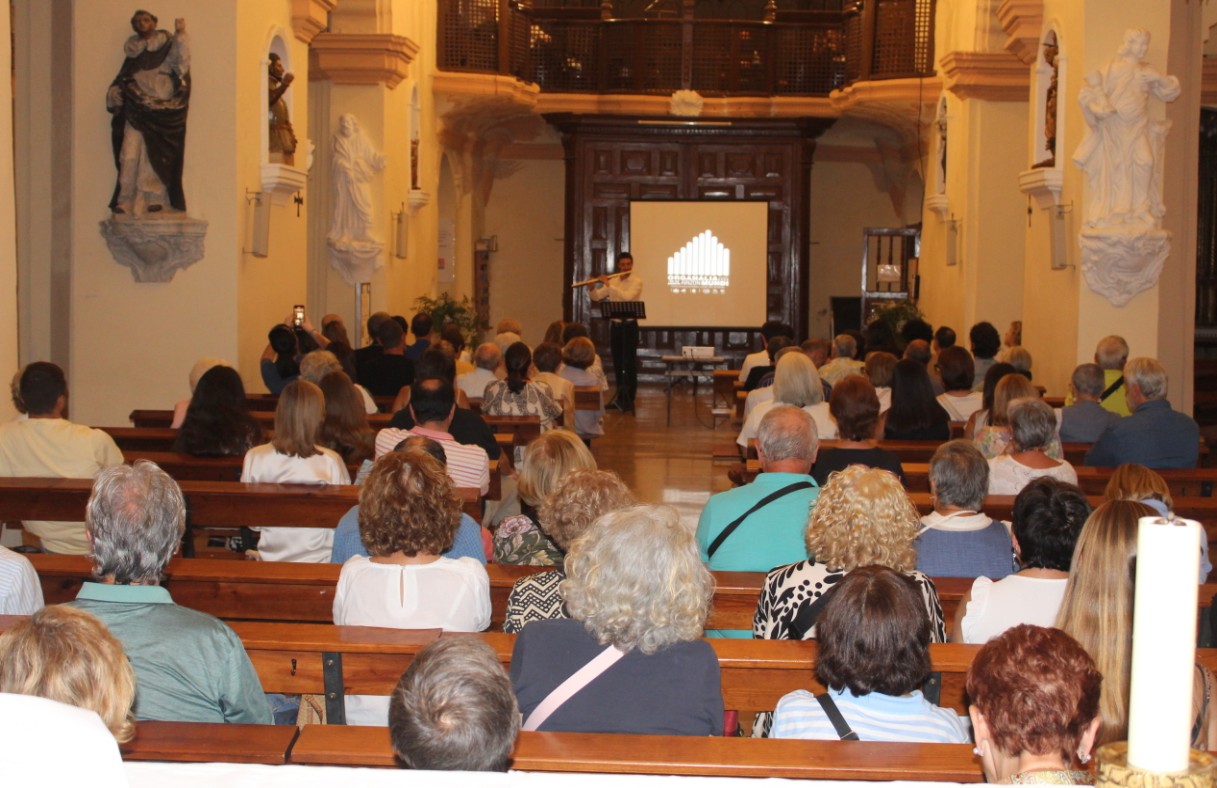 ¿Qué conforma el Festival de Música de Órgano, Cultura, Vino y Patrimonio 2025?. Hay muchos eventos, la parte central son los conciertos de órgano, pero también hay conciertos de música joven, que no tienen nada que ver con el órgano; hay charlas y visitas, por ejemplo visita al campanario, donde se van a explicar la restauración que se hizo y lo que son los toques que se hacían en 1950; hay otro concierto de Ester Ciudad, gran concertista de órgano barroco, y también degustación de vinos de la zona.
