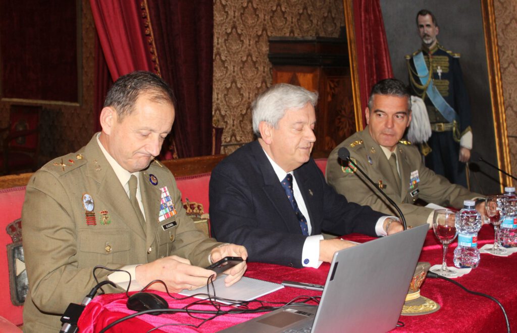 Así comenzó su conferencia el General De Olazábal: quiero iniciar esta conferencia mostrando mi agradecimiento tanto a mi Regimiento, el “España”, en el que me honro en haber servido al mando del 2º de Lanceros de Borbón, como a la Real Maestranza de Caballería de Zaragoza, noble institución a la que también me honra pertenecer, por permitirme ocupar esta tribuna para hablar de Patria, de Rey y de Milicia. No en vano, el año pasado tuvimos ocasión de celebrar los primeros diez años de reinado de Su Majestad el Rey Felipe VI. Para comenzar esta estas palabras me he atrevido a citar a Su Majestad el Rey, quien así definió el modo como pretendía cumplir con las responsabilidades recibidas en la celebración de la Pascua Militar del año 2015, la primera que presidía como Mando Supremo de las Fuerzas Armadas, “mandar es servir”.