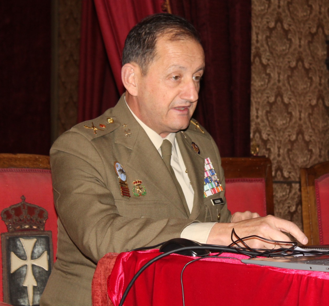 Así comenzó su conferencia el General De Olazábal: quiero iniciar esta conferencia mostrando mi agradecimiento tanto a mi Regimiento, el “España”, en el que me honro en haber servido al mando del 2º de Lanceros de Borbón, como a la Real Maestranza de Caballería de Zaragoza, noble institución a la que también me honra pertenecer, por permitirme ocupar esta tribuna para hablar de Patria, de Rey y de Milicia. No en vano, el año pasado tuvimos ocasión de celebrar los primeros diez años de reinado de Su Majestad el Rey Felipe VI. Para comenzar esta estas palabras me he atrevido a citar a Su Majestad el Rey, quien así definió el modo como pretendía cumplir con las responsabilidades recibidas en la celebración de la Pascua Militar del año 2015, la primera que presidía como Mando Supremo de las Fuerzas Armadas, “mandar es servir”.