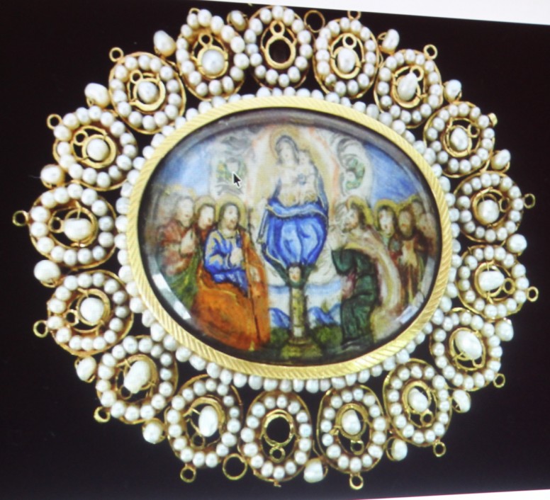 Mostró la Doctora Naya, en imágenes, antiguos documentos que hablan de cómo eran esas ofrendas, de cómo las gentes ofrecían siempre lo mejor, y en los que se percibe la devoción a la Virgen del Pilar a través de las ofrendas. También expuso una tabla de cotización de piedras preciosas, para un quilate, del siglo XVI, en la que se aprecia perfectamente que la piedra preciosa más cotizada del Renacimiento era el rubí, seguida del diamante y la esmeralda. Las primeras ofrendas que se reciben en el tesoro del Pilar son de rubíes y de perlas.